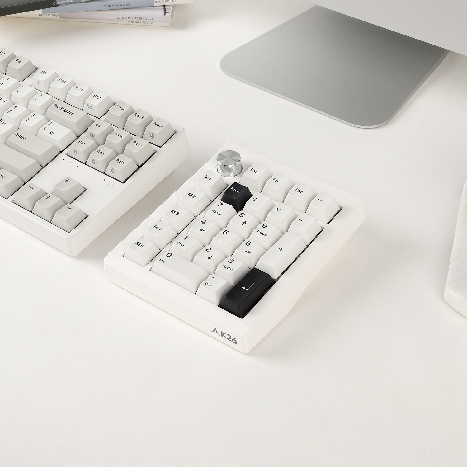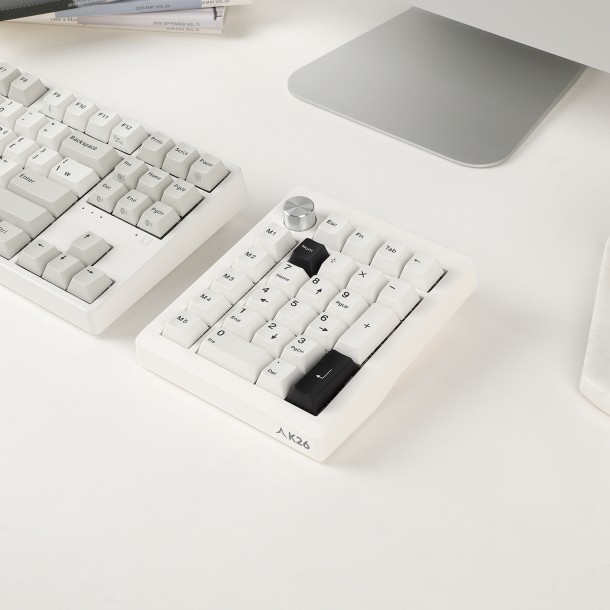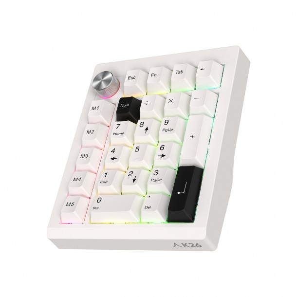 키패드 / 유선+무선 / 전용동글(리시버) / 블루투스 / 내장 배터리 / 1000mAh / 26키 / 키압: 37g / 기계식 / 매크로키 / RGB 백라이트 / 스텝스컬쳐2 / 스테빌라이저 / 스위치 교체형 / 흡음재 / 다이얼(노브) / C타입 포트 / S/W매크로 / 동시입력: 무한 / 1ms 응답속도 / PBT / 염료승화 방식 / 착탈식 케이블 / 멀티페어링 / 멀티미디어 / 키캡 리무버 / 가로: 146.9mm / 세로: 121.1mm / 높이: 45.7mm / 304g / 1년 보증